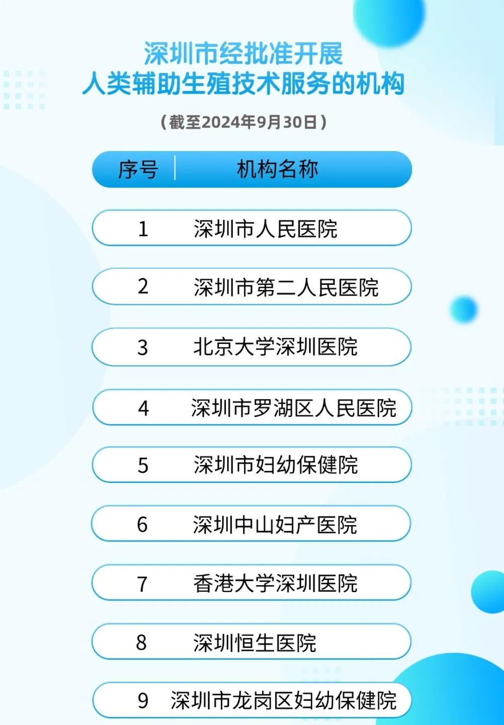 深圳市內輔助生殖醫(yī)保定點醫(yī)療機構
